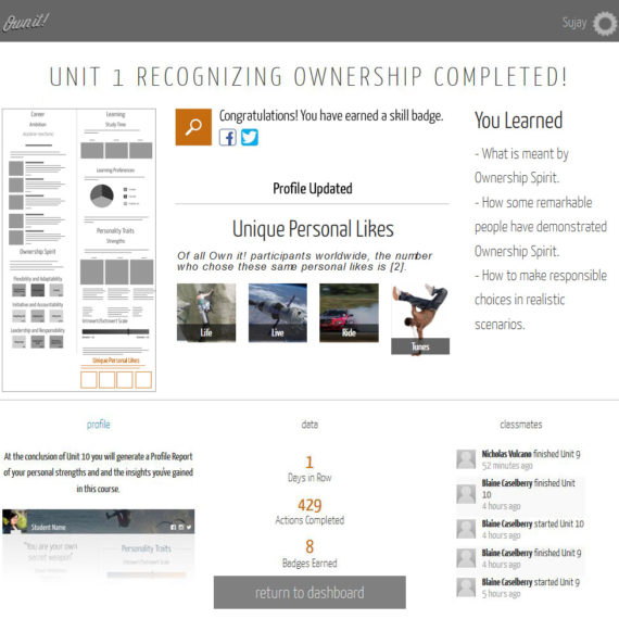 Own it! is a comprehensive, 10-unit E-Learning mini-course that prepares students with the mindset that they need to own their learning and provides a personal profile to guide their choices. The platform is used by thousands of students from multiple universities across the nation. Indivision helped to design the technical architecture of the platform and provided the development, hosting and ongoing support that continues to make this project highly successful.